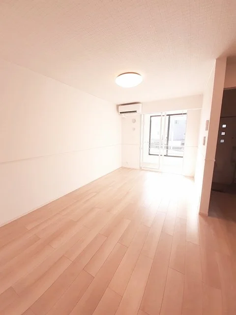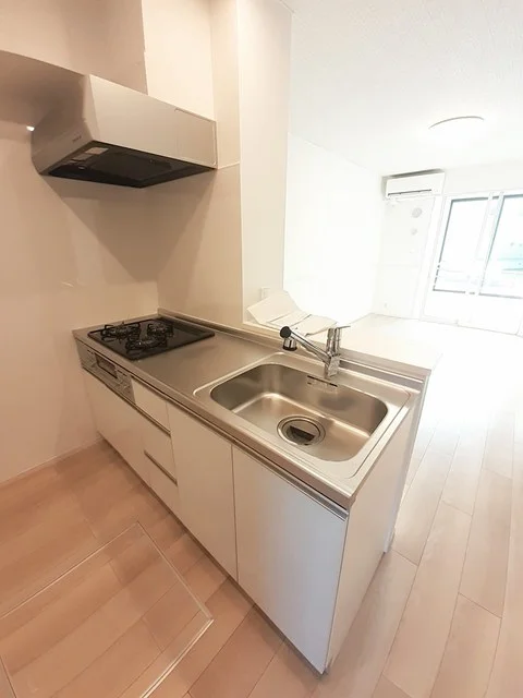 開放感のあるリビングと機能的なキッチンを備えた快適1LDK。使いやすいシステムキッチン付きで、快適なマンスリー滞在を実現します。