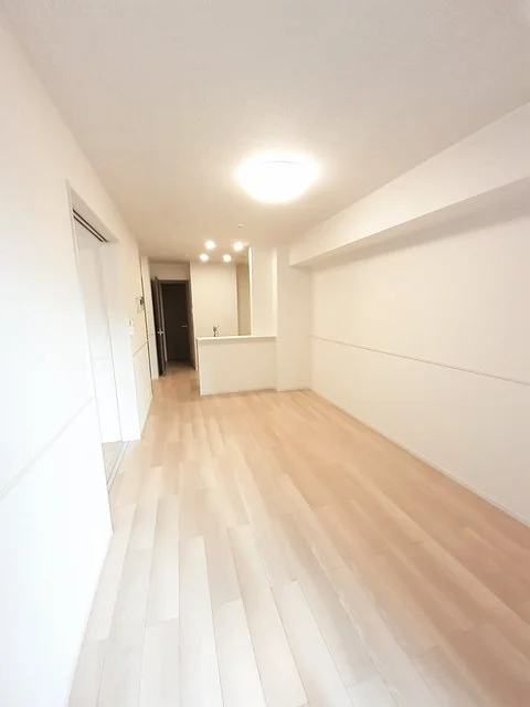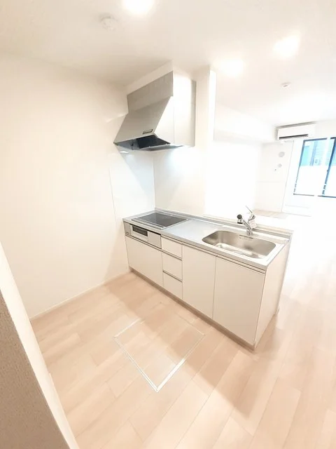 開放感のあるリビングと機能的なキッチンを備えた快適1LDK。使いやすいシステムキッチン付きで、快適なマンスリー滞在を実現します。