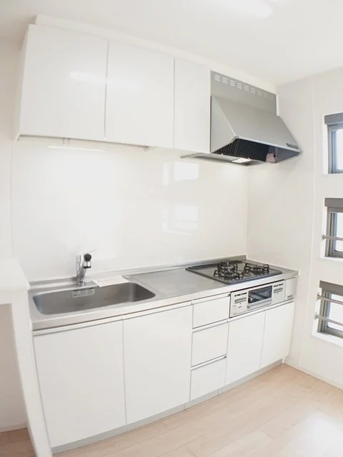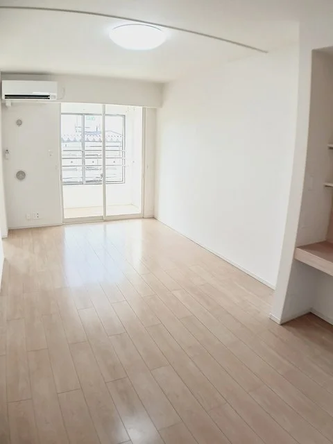 開放感のあるリビングと機能的なキッチンを備えた快適1LDK。使いやすいシステムキッチン付きで、快適なマンスリー滞在を実現します。