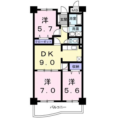 | 間取り | 3DK | 面積 | 61.88m² |