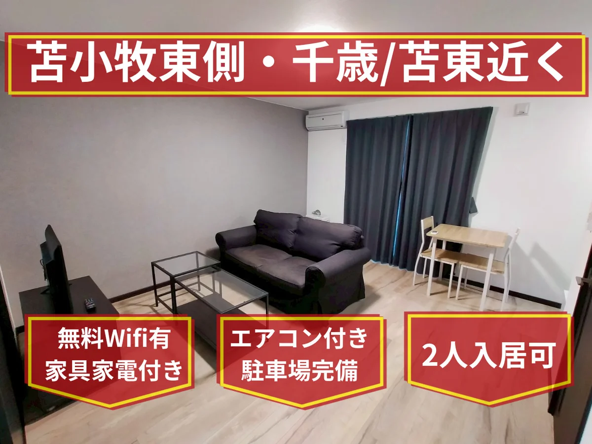 千歳エリアへのアクセスに優れた、苫小牧東側の築浅マンスリーマンション(2025年9月築)。