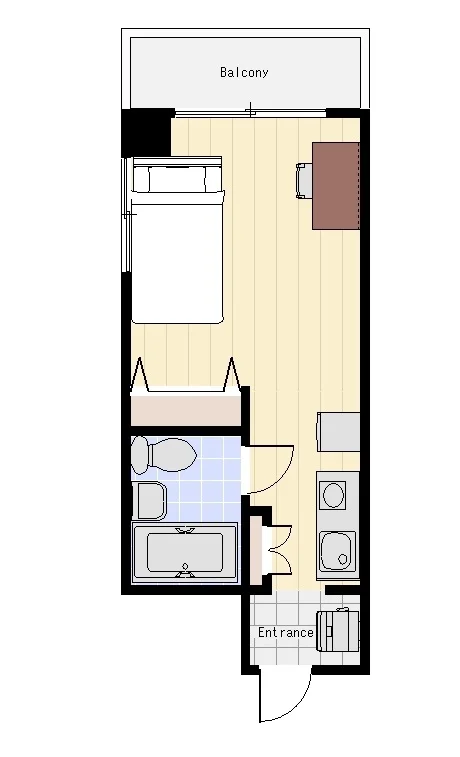 ミニ冷蔵庫、給湯器、洗面台、温水洗浄便座、テレビ、バルコニー(物干し禁止)