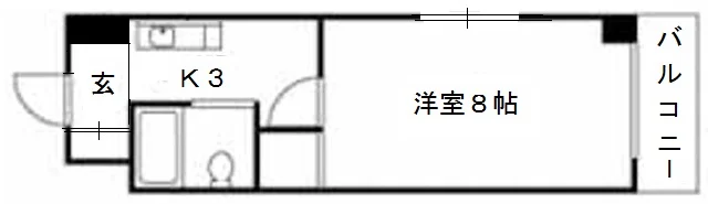 | 間取り | 1K (洋)8帖・(K)3帖 | 面積 | 23.08m² |