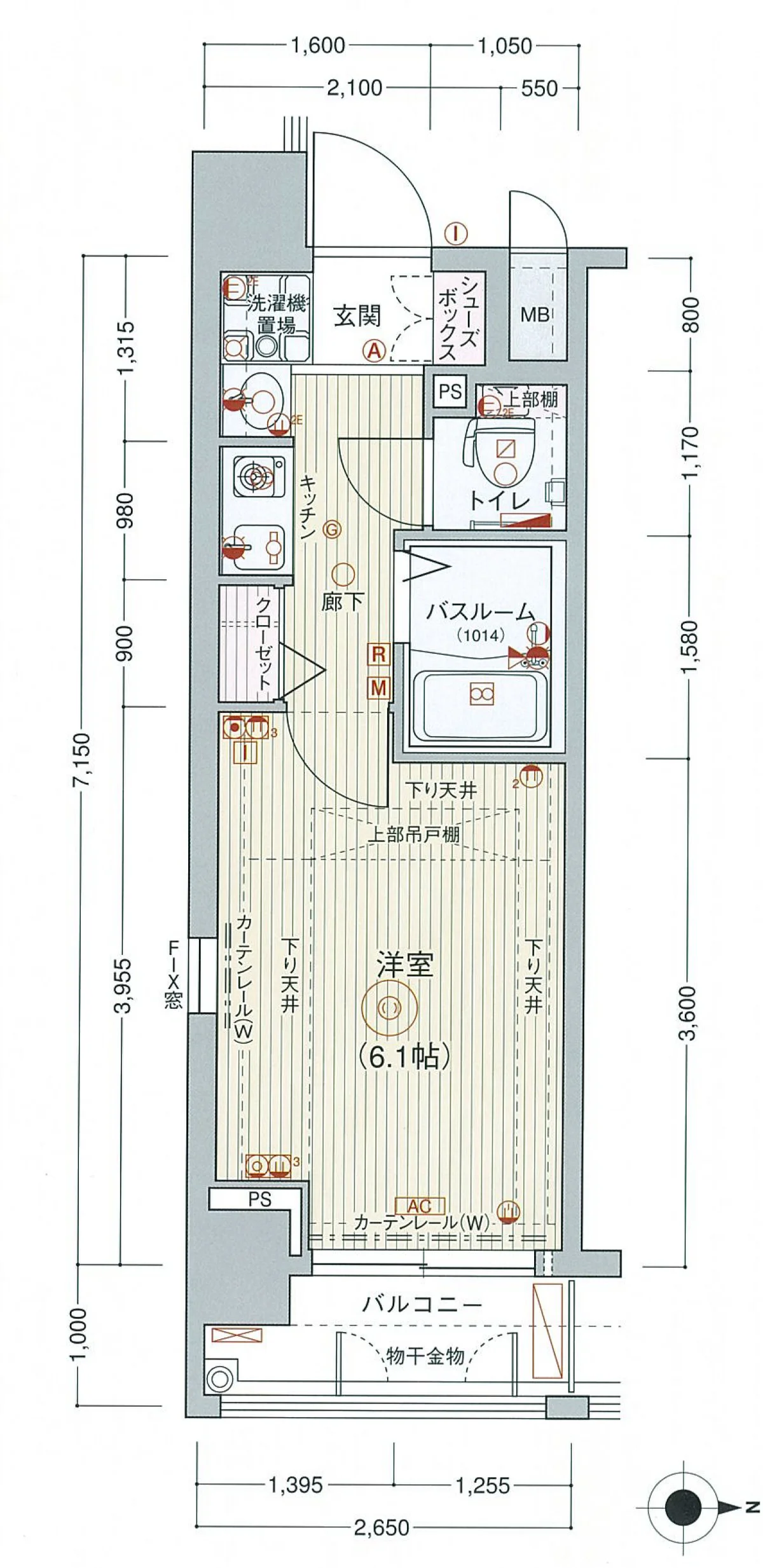 | 間取り | 1K | 面積 | 18.94m² |