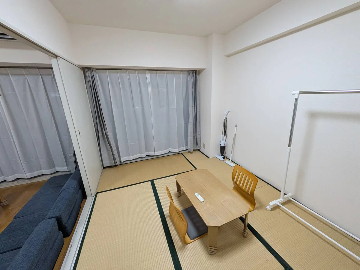 ●和室・・・ローテーブル、イス、カーテン(レース付き)、ハンガーラック、掃除機