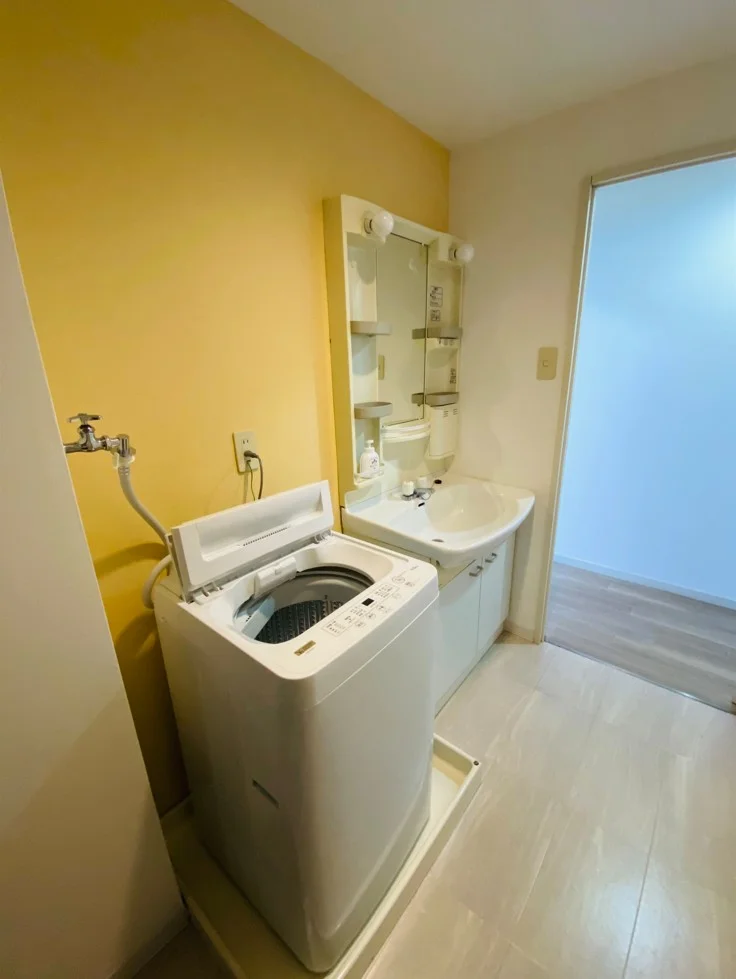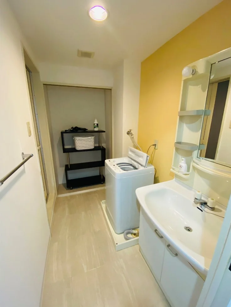 ●洗面・・・ドライヤー、洗濯機(5.0kg)、洗面ラック、洗濯カゴ、シェルフ(棚)