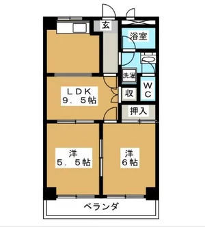| 間取り | 2LDK LDK9.5帖、洋室5.5帖、洋室6帖 | 面積 | 49m² |