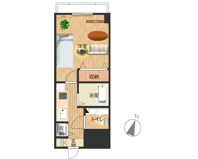 | 間取り | 1K 8帖 | 面積 | 26.63m² |