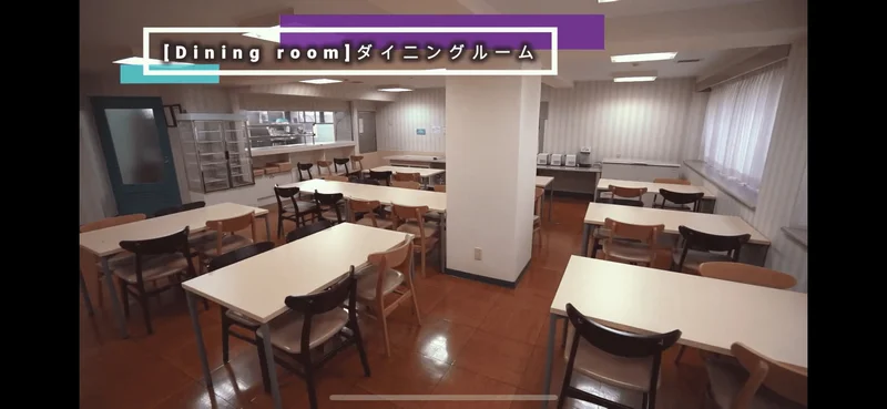 ▼館内共用設備:食堂(Wi-Fiあり)・キッチンコーナー・電子レンジ・ランドリールーム(洗濯:無料/乾燥機:有料)・メールボックス・ゲストルーム・AED設置・非常用備蓄品