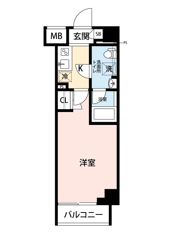 | 間取り | 1K | 面積 | 24.64m² |