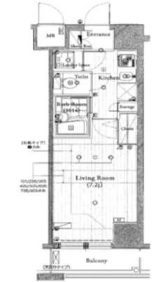 | 間取り | 1K | 面積 | 22.68m² |