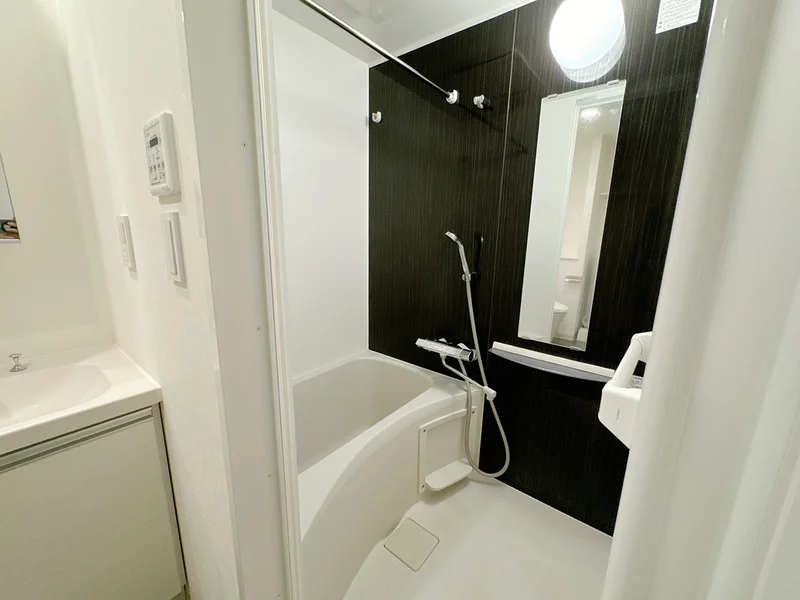 中長期の滞在でも快適に過ごせる駅近・築浅・インターネット完備の物件。TVモニター付オートロックと防犯カメラもついているので、安全性も抜群です。近くには黒湯温泉が湧き出る銭湯があり、ワンコインで疲れた体を癒すことができます。