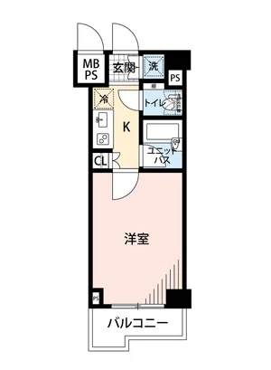 | 間取り | 1K | 面積 | 21.28m² |