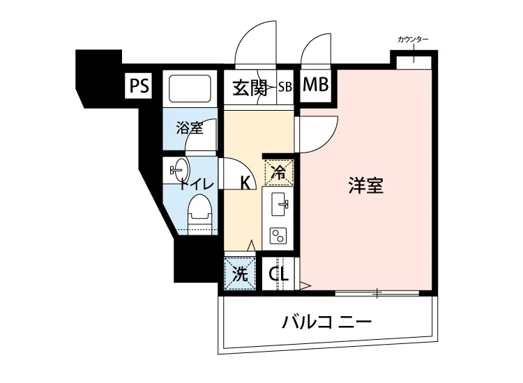 | 間取り | 1K | 面積 | 22.62m² |