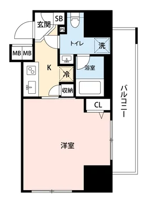 | 間取り | 1K | 面積 | 25.46m² |