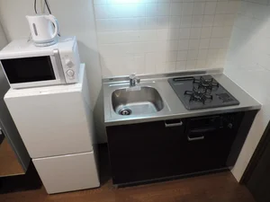 その日からすぐに生活がスタートできる家具・家電がついており、洗濯機・キッチンも完備されています。