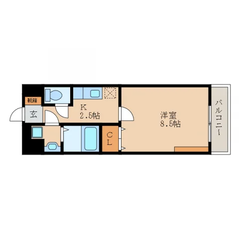 | 間取り | 1K 洋室8.5帖、K | 面積 | 28m² |