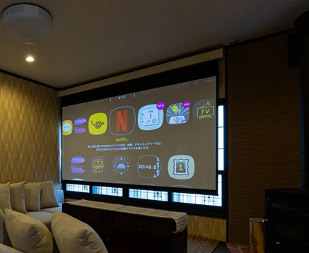 雨の日も110インチスクリーンで NETFLIX ミニ映画館のようです。土砂災害警戒区域外で浸水の心配もありません!